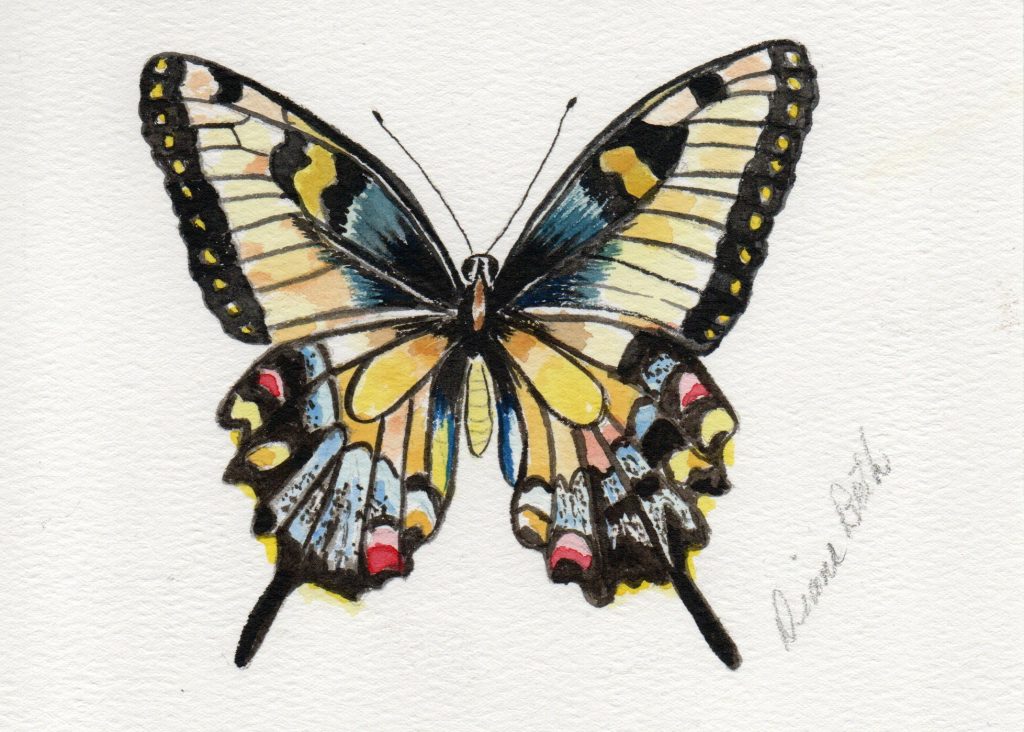 I love butterflies and I want to paint a whole series of them. These are the first two. They are both swallow-tailed butterflies. I loved painting them and seeing them come to life with the paintbrush. These beauties live very short lives, but they make the most of it pollinating different flowers and lay one egg at a time for a future generation!